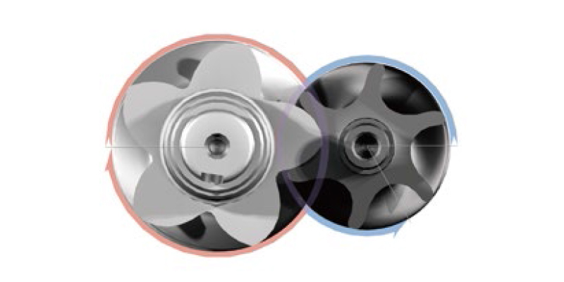 - 即使在連續運轉狀況下, 轉子亦保持最佳間隙值, 穩定而高效。