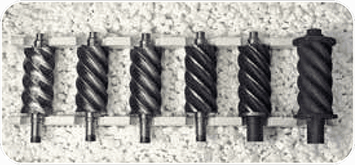 - 螺旋式空氣壓縮機機體的公轉子是主動轉子,需要極高的強度。為此, 我們採用了高強度錳鋼;母轉子由於是受力轉子,我們採用了耐磨性、 韌性極佳的球狀石墨鑄鐵;提高了轉子的壽命及可靠度。