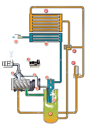 - 加大的油細分離器設計 使油氣分離面積更大, 在具備更好的過濾效果 的同時,也減少了油氣 分離過程中所產生的壓 降,使整個空氣壓縮系 統的效率更高。