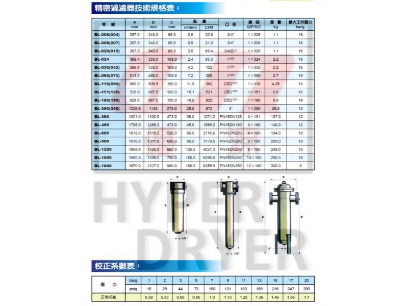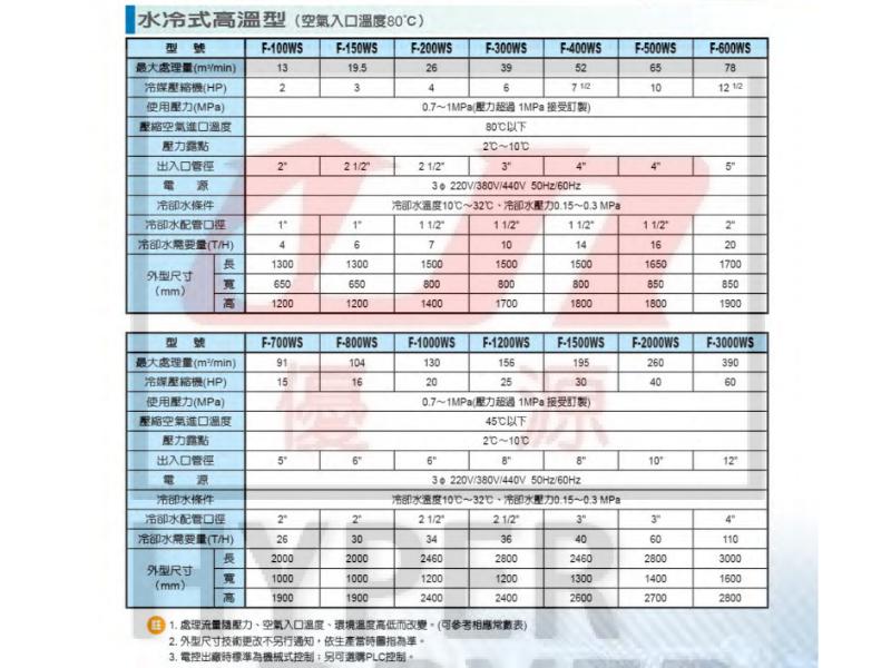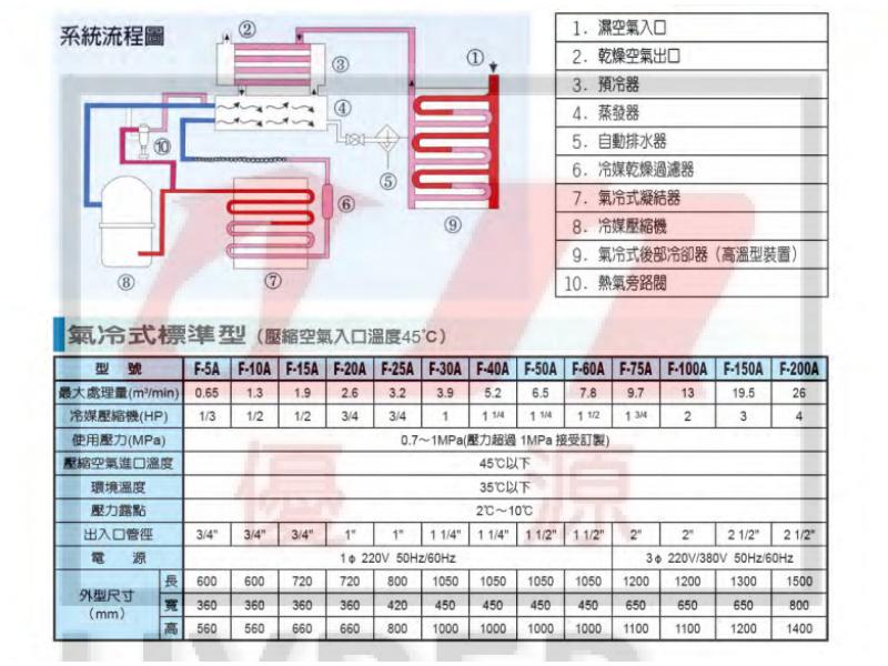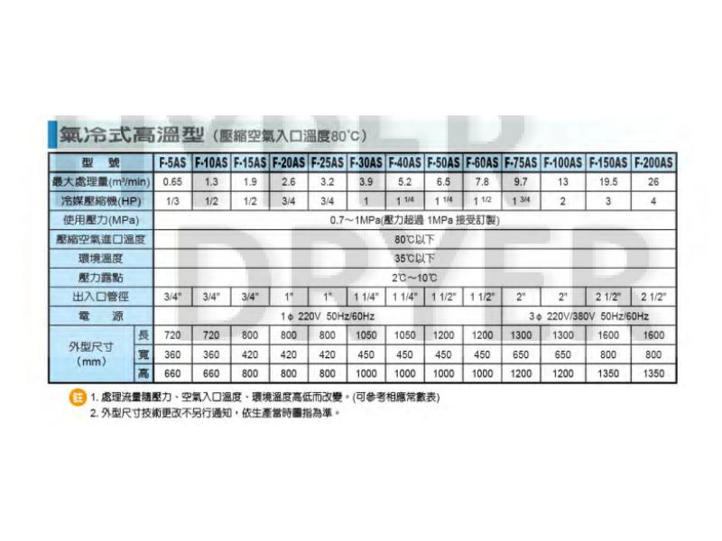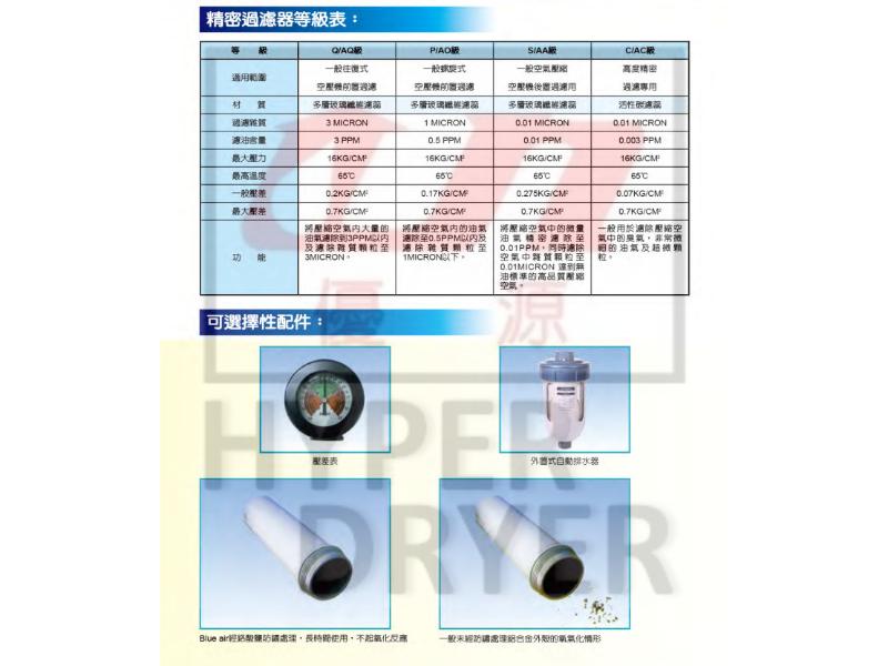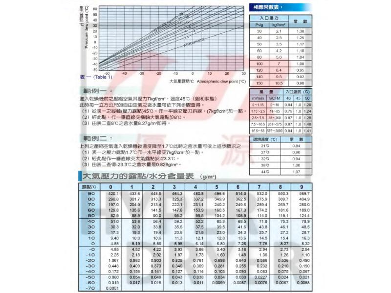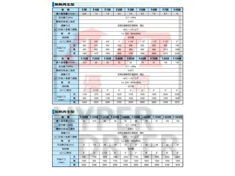 吸附式壓縮空氣乾燥機規格表 ![]()